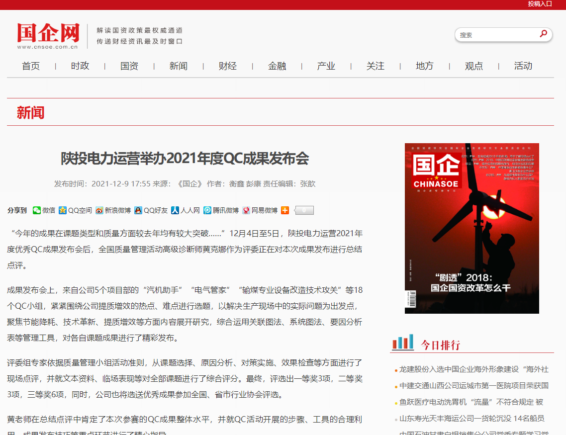 國企網(wǎng):陜投電力運營舉辦2021年度QC成果發(fā)布會
