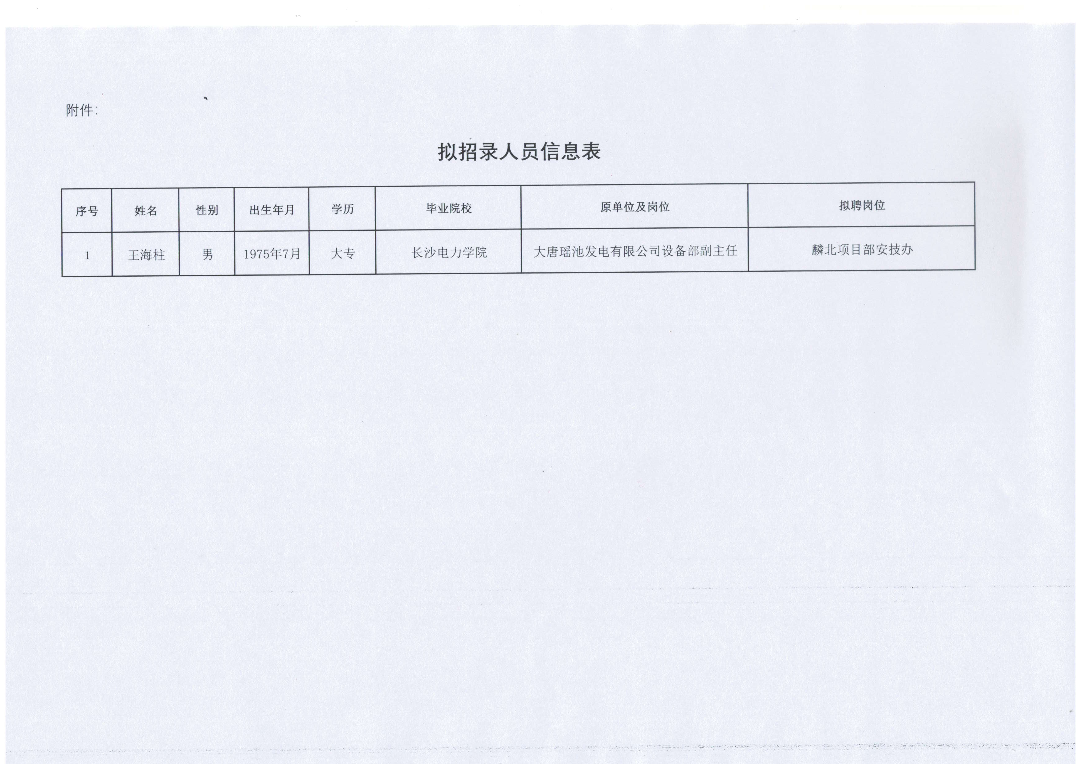 陜西能源電力運營有限公司關(guān)于擬招錄人員的公示