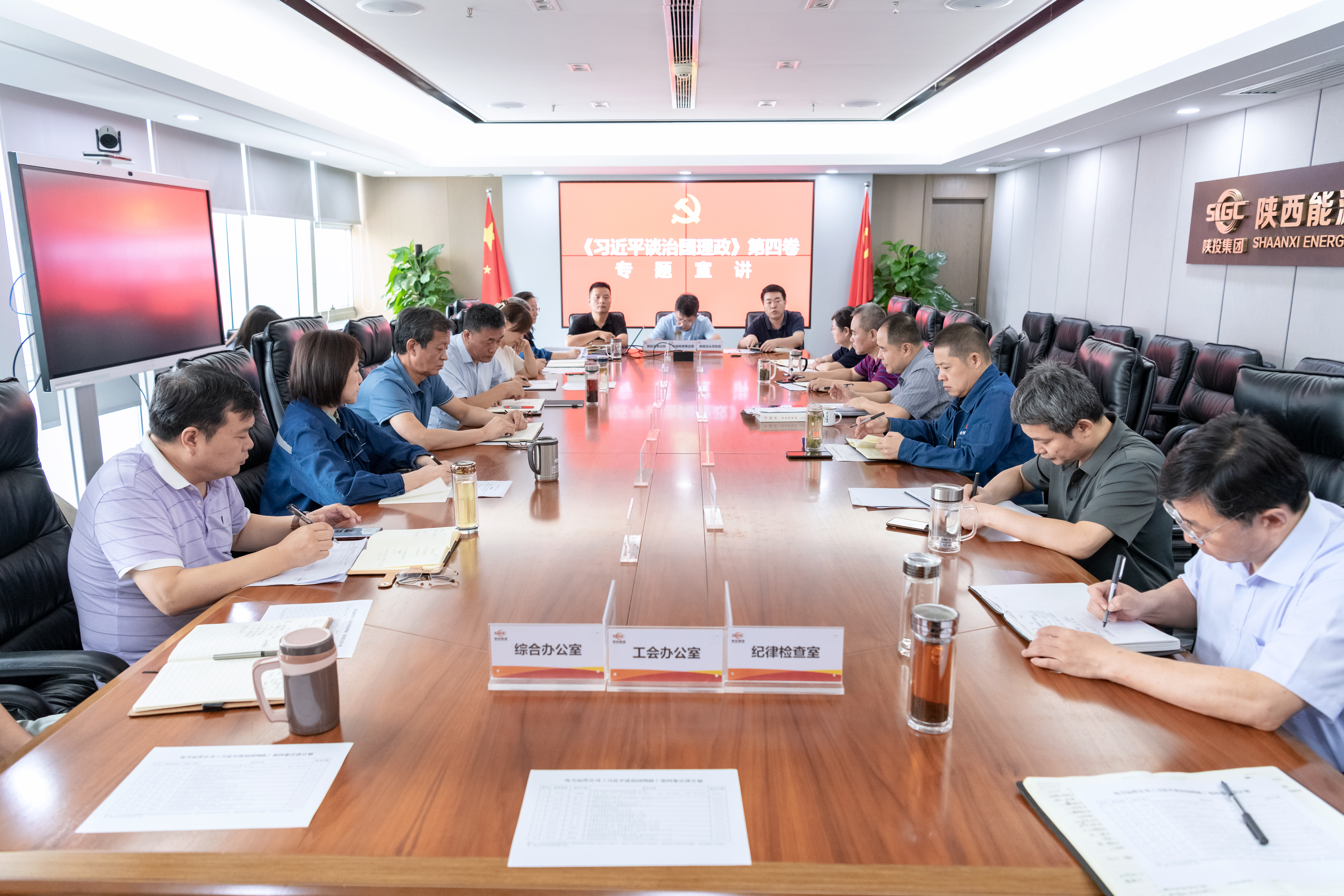 會(huì)議強(qiáng)調(diào),要提高政治站位,把學(xué)習(xí)好宣傳好貫徹好《習(xí)近平談治國(guó)理政》第四卷作為當(dāng)前一項(xiàng)重大政治任務(wù),創(chuàng)新宣講形式,精心組織實(shí)施,推動(dòng)《習(xí)近平談治國(guó)理政》第四卷大學(xué)習(xí)、大普及、大落實(shí),不斷提高政治判斷力、政治領(lǐng)悟力、政治執(zhí)行力。要做到融會(huì)貫通、學(xué)以致用,把《習(xí)近平談治國(guó)理政》第四卷與前三卷的內(nèi)容作為一個(gè)整體貫通學(xué)習(xí),從新時(shí)代黨的創(chuàng)新理論中找答案,引導(dǎo)黨員干部職工將學(xué)習(xí)貫徹好《習(xí)近平談治國(guó)理政》第四卷與做好下半年重點(diǎn)工作、推動(dòng)黨建工作與生產(chǎn)經(jīng)營(yíng)深度融合有機(jī)銜接起來(lái),全力以赴保經(jīng)營(yíng)、保生產(chǎn)、保穩(wěn)定,圓滿完成年度既定的目標(biāo)任務(wù),以實(shí)際行動(dòng)迎接黨的二十大勝利召開。