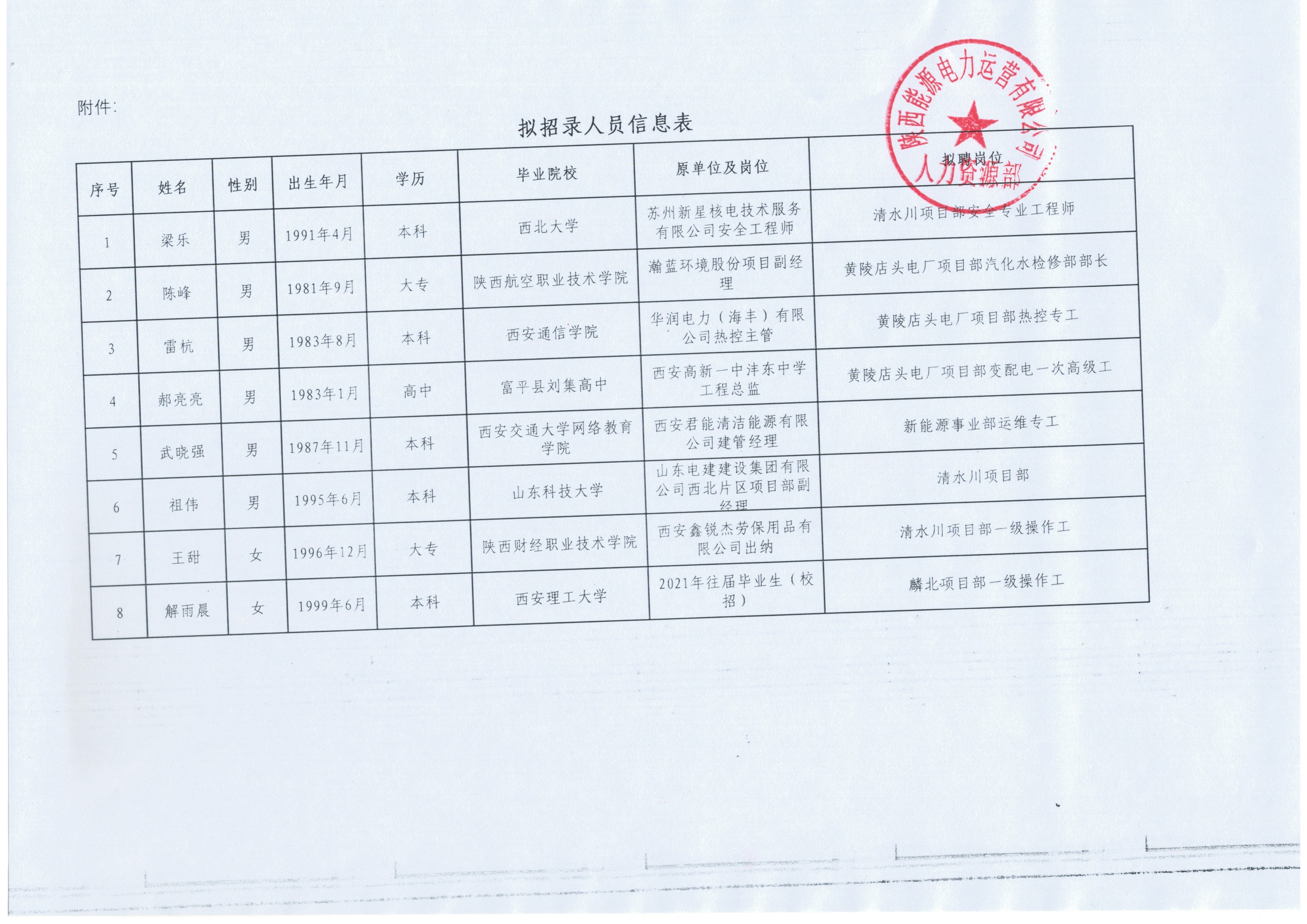 關(guān)于擬招錄梁樂等8人的公示