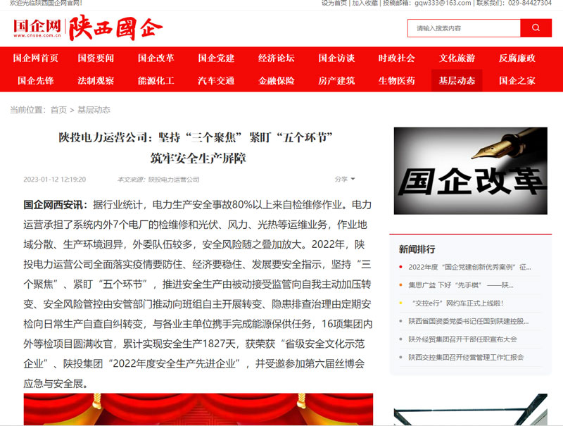 陜西國企網(wǎng):陜投電力運營:堅持“三個聚焦” 緊盯“五個環(huán)節(jié)” 筑牢安全生產(chǎn)屏障
