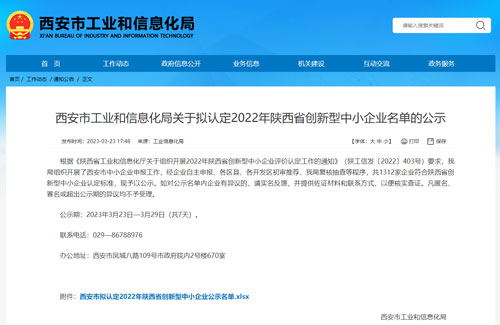 近日,公司成功入選“2022年陜西省創(chuàng)新型中小企業(yè)”名單。
