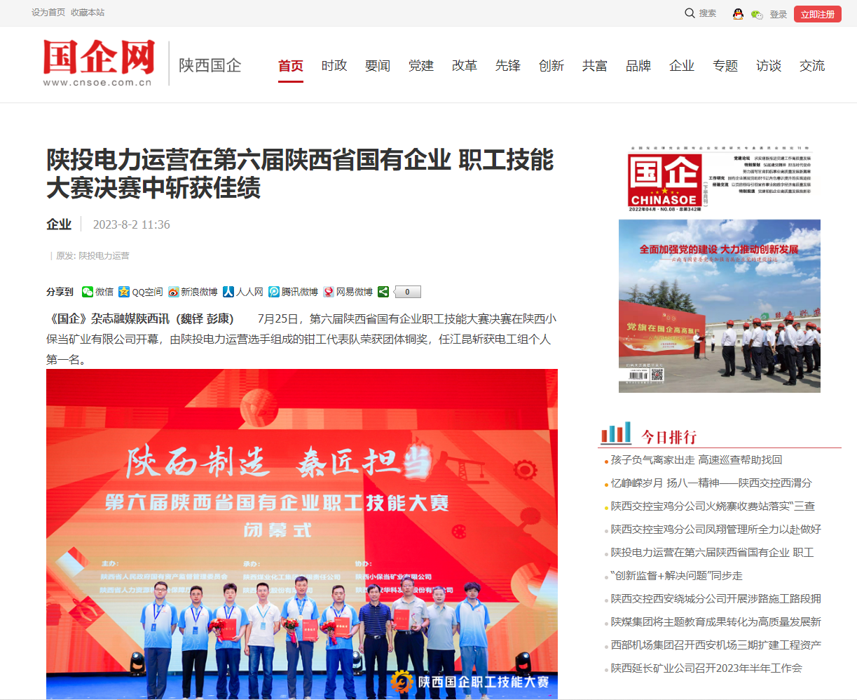 陜西國企網(wǎng):公司在第六屆陜西省國有企業(yè)職工技能大賽決賽中斬獲佳績