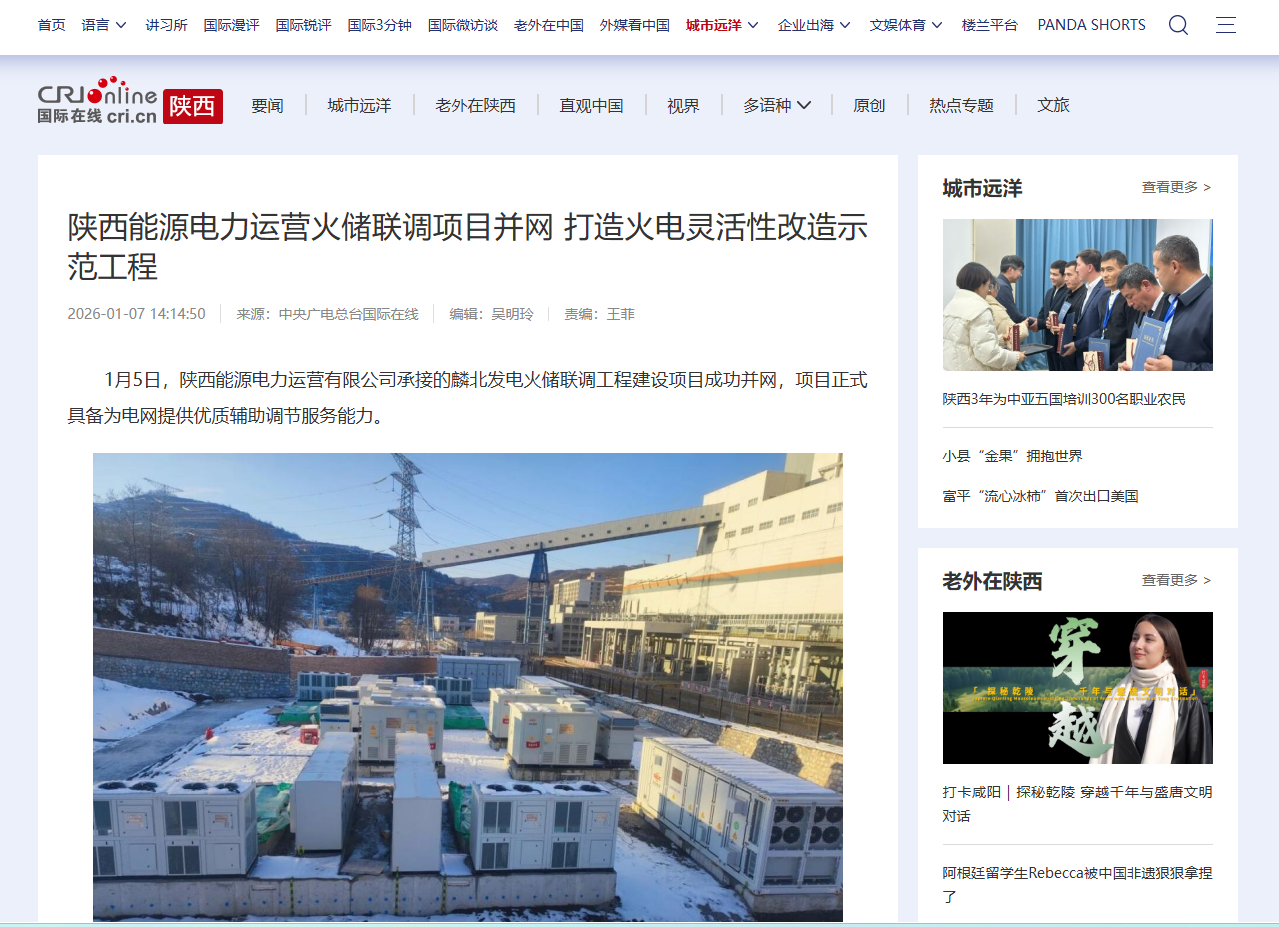 國際在線:電力運(yùn)營火儲聯(lián)調(diào)項(xiàng)目并網(wǎng)