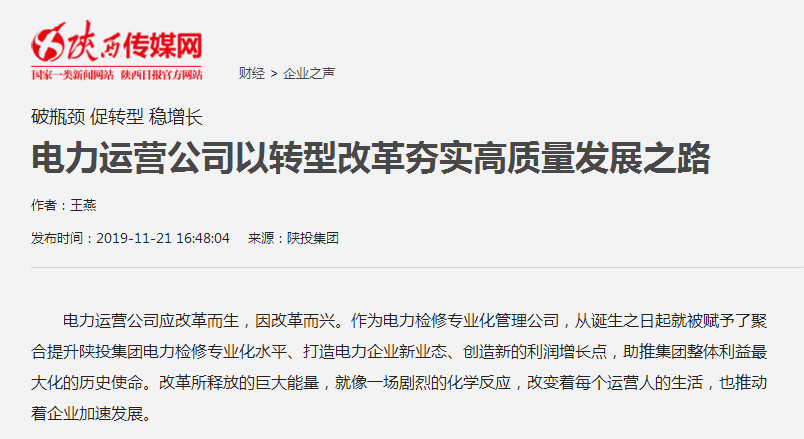 電力運營公司以轉(zhuǎn)型改革夯實高質(zhì)量發(fā)展之路