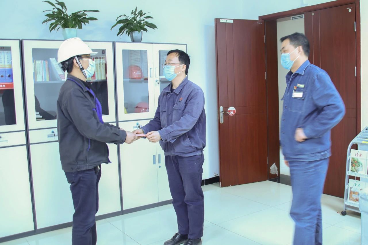 4月21日,商洛項(xiàng)目部領(lǐng)導(dǎo)前往商洛發(fā)電設(shè)備部,親手將2900元愛(ài)心捐款交到田超同志手中。